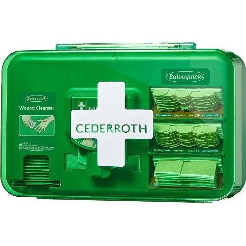 Sårpleiestasjon med alt du trenger for å håndtere mindre sårskader, plaster, sårvask og Soft Foam, samlet i en praktisk dispenser. Passer godt som et supplement til annen Førstehjelpsutstyr. Innholdet holdes friskt bak den støvtette luken, som er lett å åpne ved hjelp av den medfølgende refillnøkkelen. Produktene er låst fast for å forhindre svinn. Det er enkelt å tilpasse plasterrefillene etter arbeidsplassens spesifikke behov.