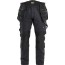 Slitesterk håndverksbukse i 2-veis Cordura Stretch Twill med 4-veis stretchpaneler i skrittet, bærestykke og kneviker. Avtakbare og utvidbare, ekstra brede verktøylommer med verktøyhåndtak, verktøylommer og ekstra lommer med glidelås. Lommer med glidelås. Baklomme med belg. Benlomme med belg og lokk med borrelåsfeste og en innvendig telefonlomme i netting. Benlomme med glidelås. Forsterket linjal-lomme med knivholder og pennelomme. Avtakbar og utskiftbar løkke for hammerholder. Avtakbar ID-kortlomme. D-ring i linningen. Bred nederkant bak. Forhøyet midje bak. Gylf med glidelås i plast. Glidelås med refleksbånd. Metallknapper. Ventilasjon i bærestykke og kneviker. Innvendig bensøm med 3-nålsøm. Forbøyde ben. Knelommer i Cordura Stretch Dobby for beskyttelse av knærne. Reflekterende detaljer. Gode overflater for dekalering. Vask 60°C.