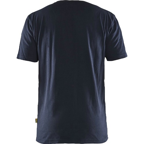 Tofarget, rundhalset t-skjorte. Forsterket nakke- og skuldersøm samt bærestykke over skuldrene. Ribbestrikket hals. Vask 60°C.