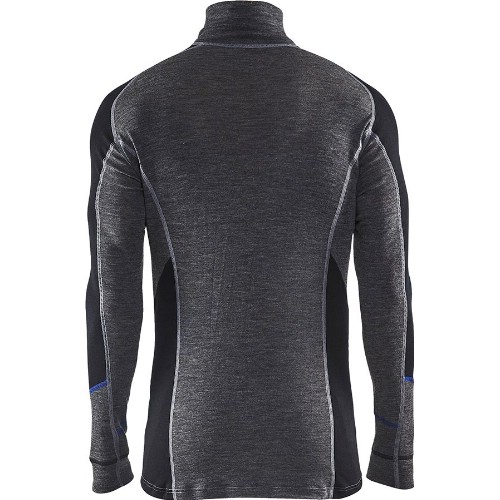 Varmende undertøy i 100 % merinoull. Ribbestrikk og fukttransporterende. Oppvarmingssoner er på skuldre, armer, rygg, bak og på sidene. Høy krage med glidelås. Forlenget ryggfinish. Mansjetter ved ermeender. Sømmer i kontrastfarge. Vaskes 40°C.